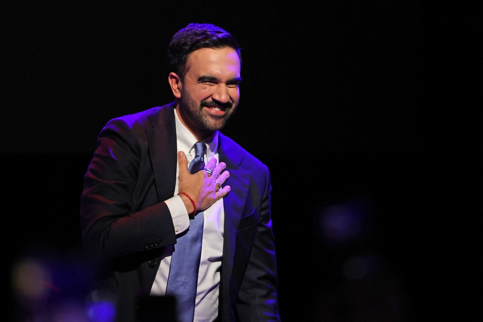 New York City mayoral candidate Zohran Mamdani celebrates during an election night event in Brooklyn, New York, on November 4, 2025.