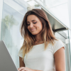 A woman covers her nose while walking while the smoke rises from a nearby site of a Russian missile strike in kyiv, Ukraine, on April 6, 2025.