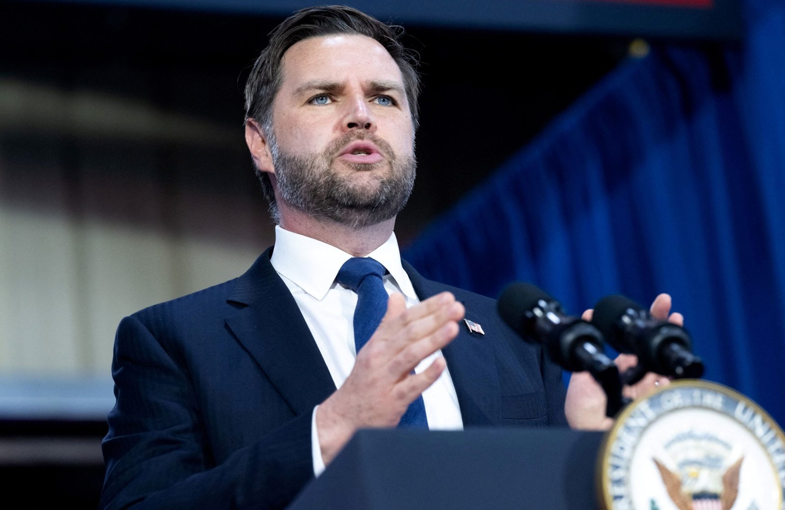 Vice President JD Vance offers comments on the “Law of Big Big Beautiful Bill” in Don’s Machine Shop in West Pittston, Penn., On July 16, 2025.